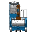 This compactor is powered by an electric motor and battery packs, with access to a control cabin via a ladder. Movements are supported by a hydraulic circuit, with an electric motor-driven pump transmitting energy to a distributor. The cabin user operates this distributor to move the arms and perform the compaction cycle. The roller is powered by two internal electric motors.